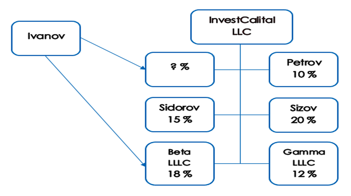 - Иванов — не участник компании, но контролирует её в силу имущественной зависимости или личных связей